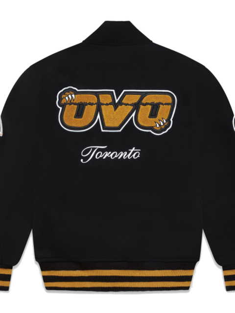 OVO X Toronto Raptors Wool & Leather Varsity Jacket Black Cream
