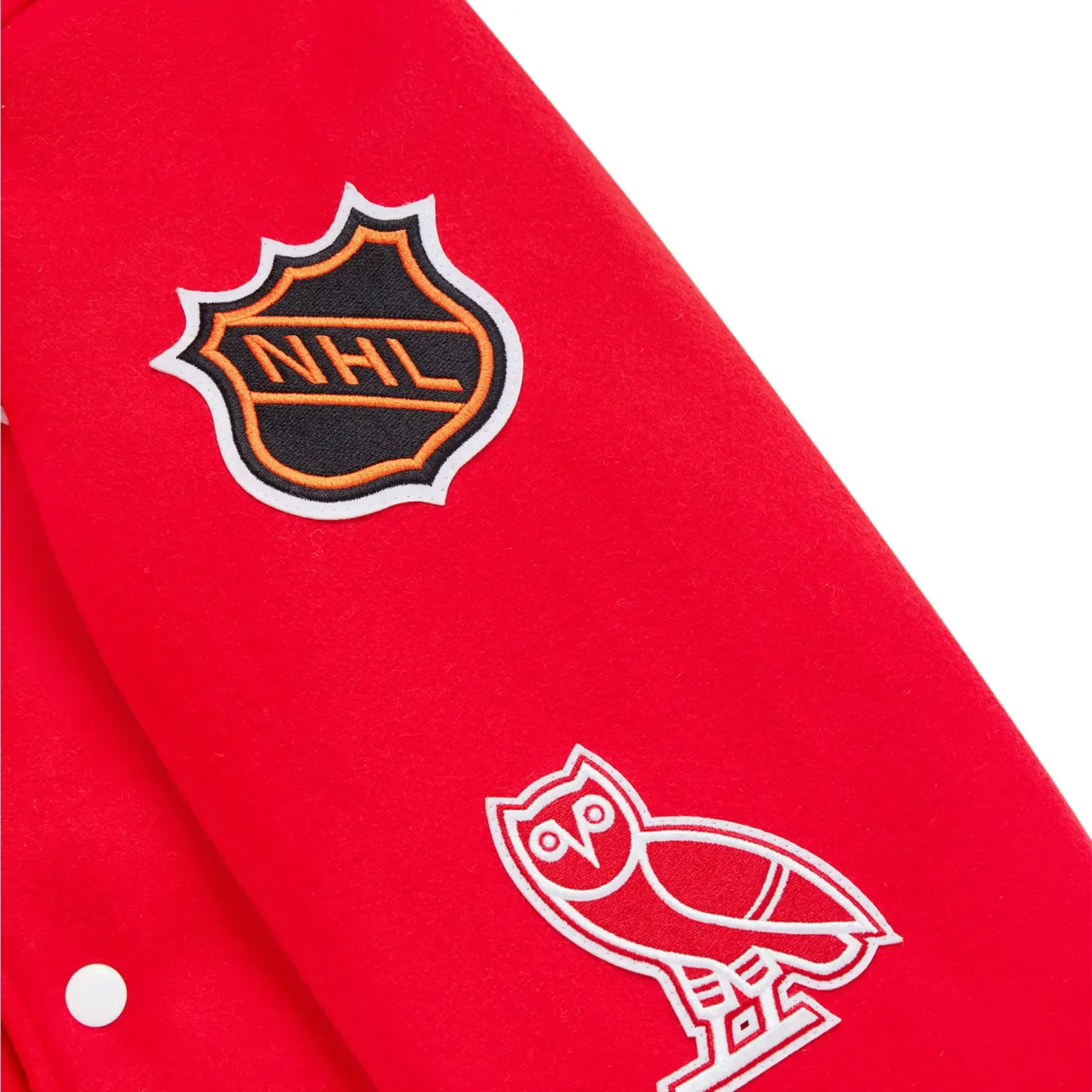 Detroit Red Wings OVO x NHL Red Full-Snap Wool Varsity Jacket