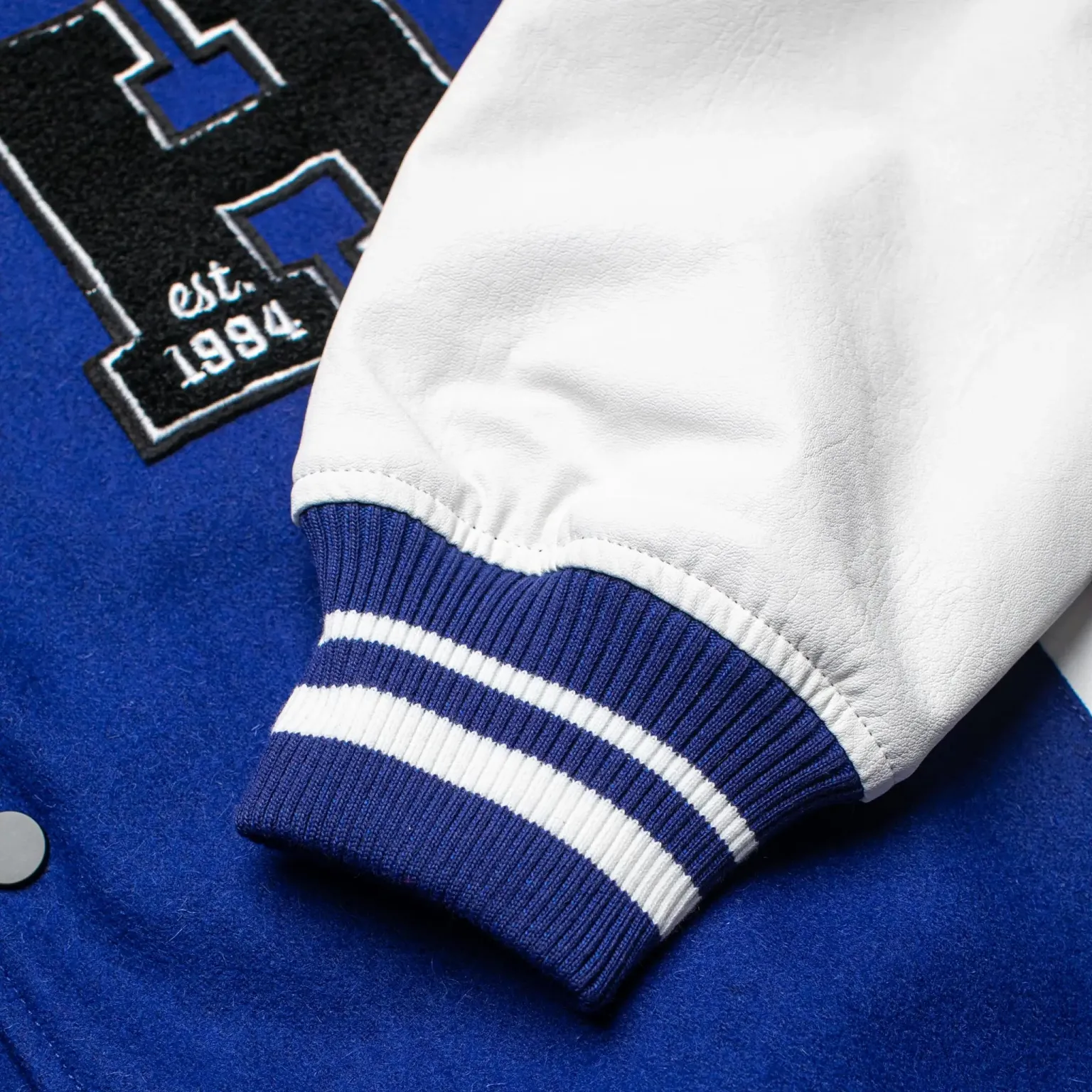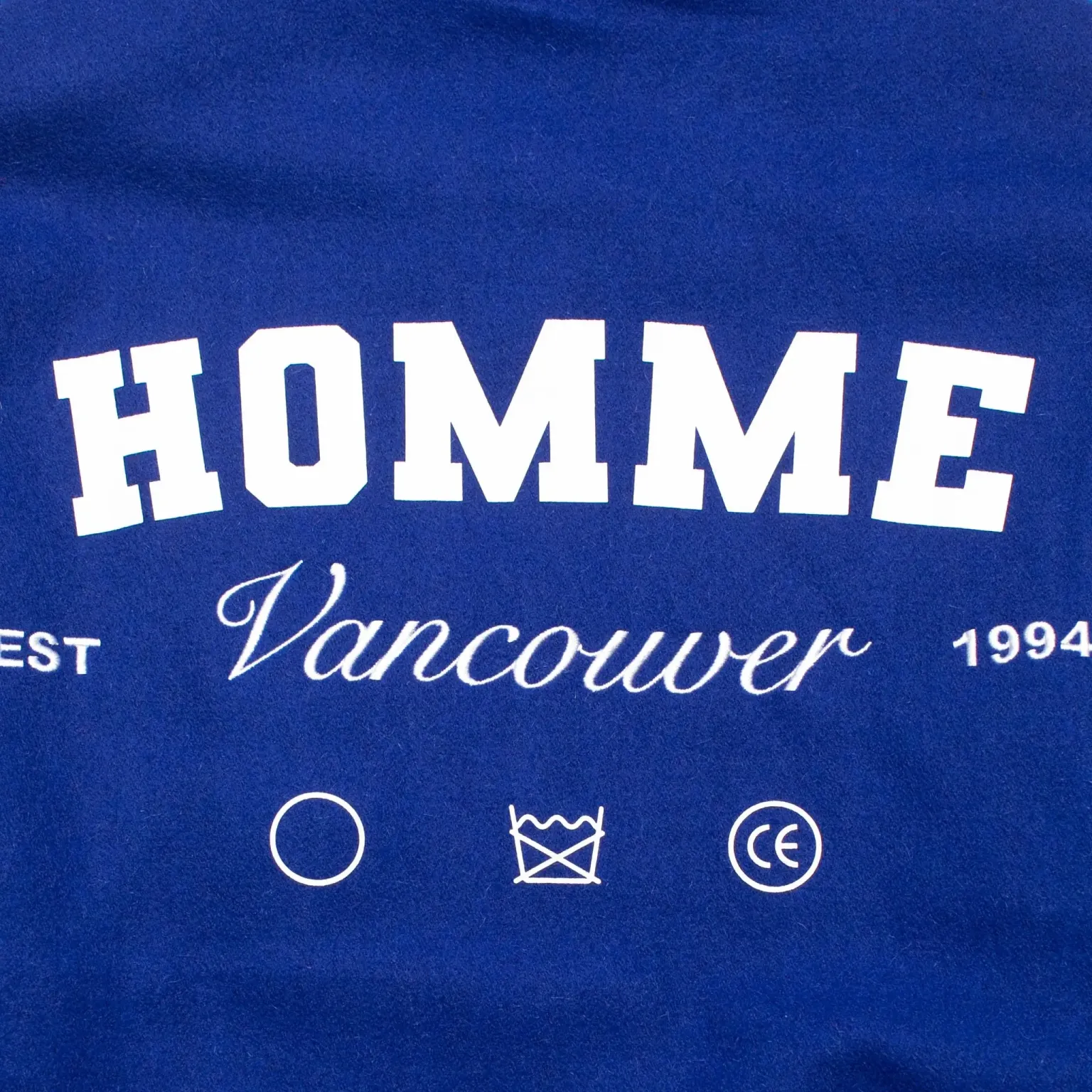 Homme Vancouver Logo Blue & White Wool & Leather Varsity Jacket