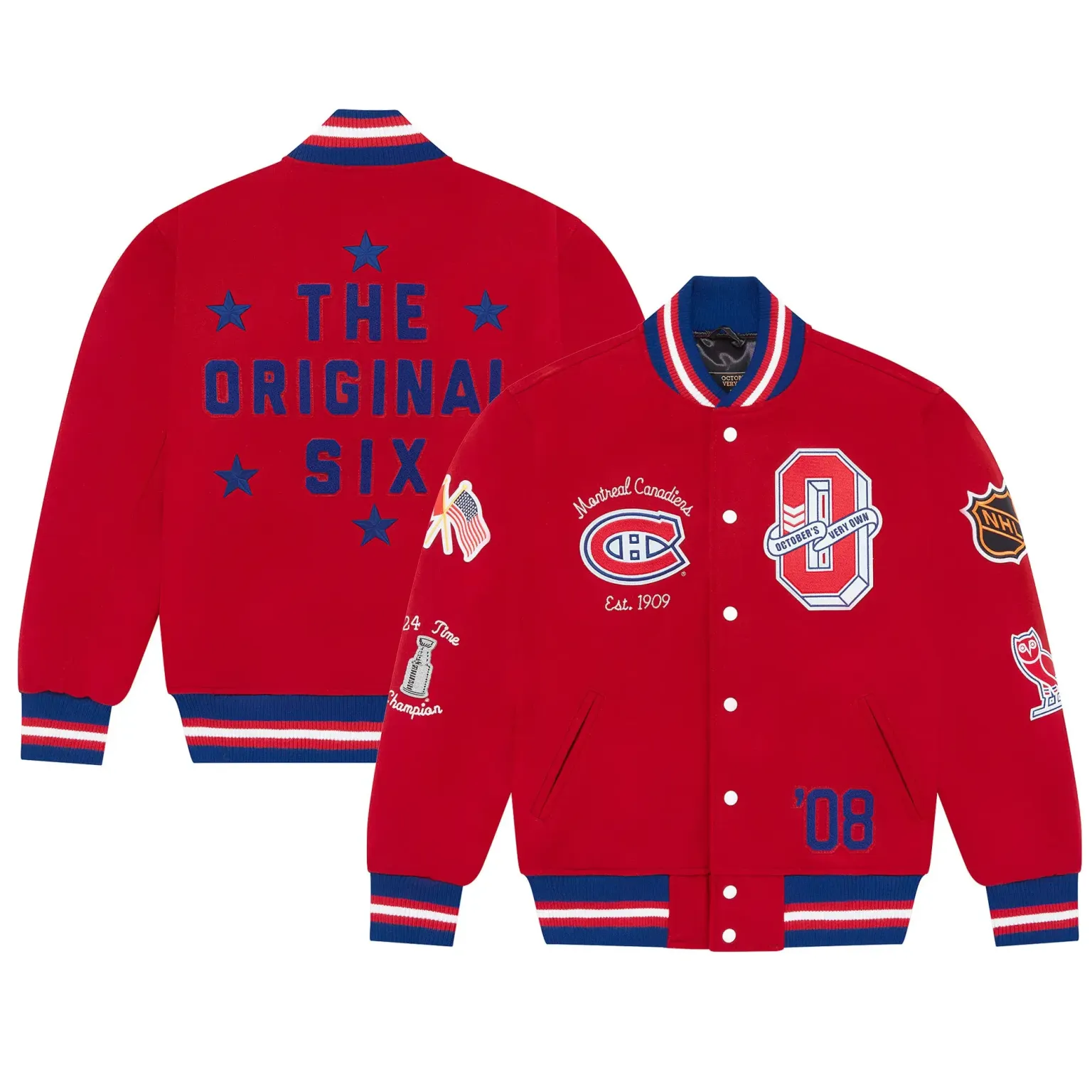 Montreal Canadiens OVO x NHL Red Full-Snap Varsity Jacket