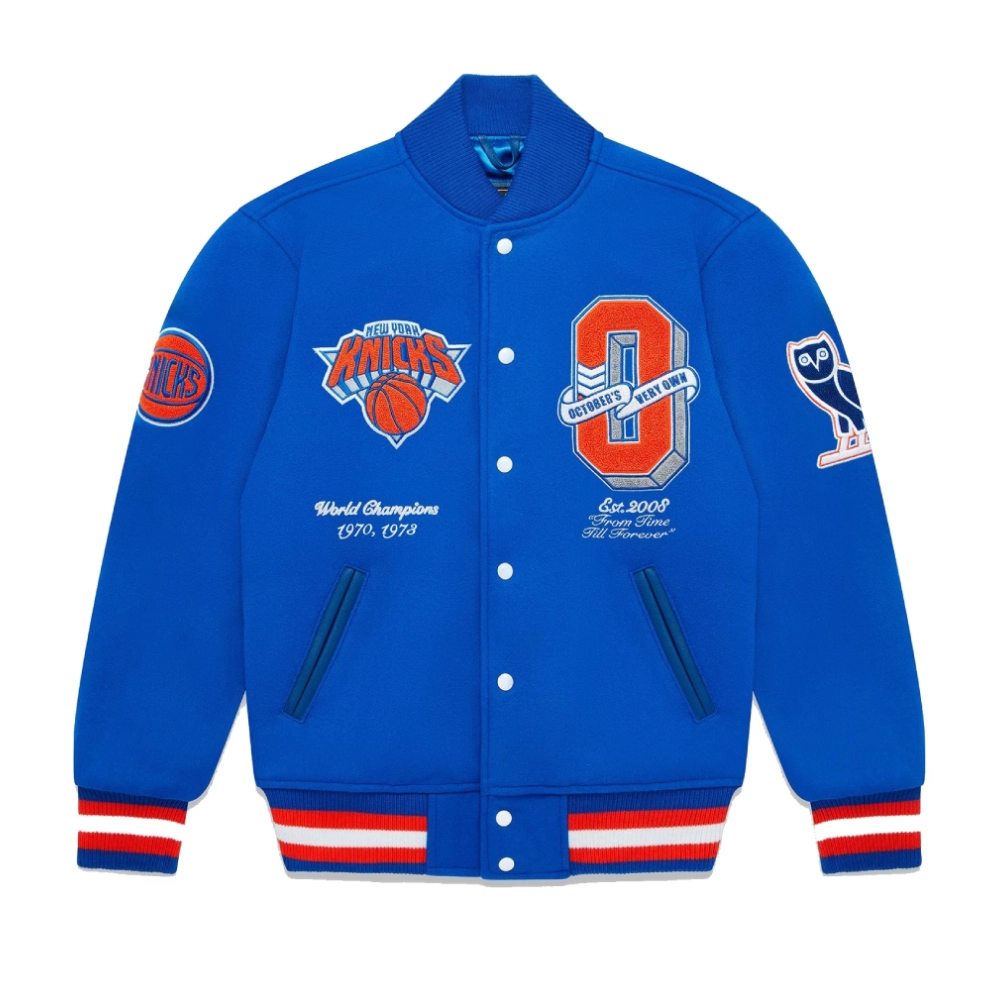 New York Knicks OVO X Blue Wool Varsity Jacket